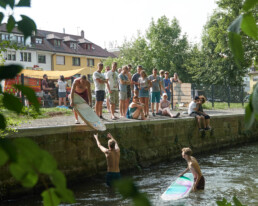 Wir sind blackforestwave e.V. – ein Verein, der sich leidenschaftlich für Aktivitäten im und am Wasser mit Rücksicht auf die Natur einsetzt. Unsere Vision ist es, die Flüsse und Seen der Stadt Pforzheim und der Region erlebbar zu machen, in das Stadtbild zu integrieren und damit einen Mehrwert zu schaffen. Derzeit sind wir 200+ Vereinsmitglieder mit einer Begeisterung für Wassersport, primär für das Surfen. Aber auch Flussputzaktionen, SUP-Workouts, Grillabende und Ausflüge kommen bei uns nicht zu kurz.